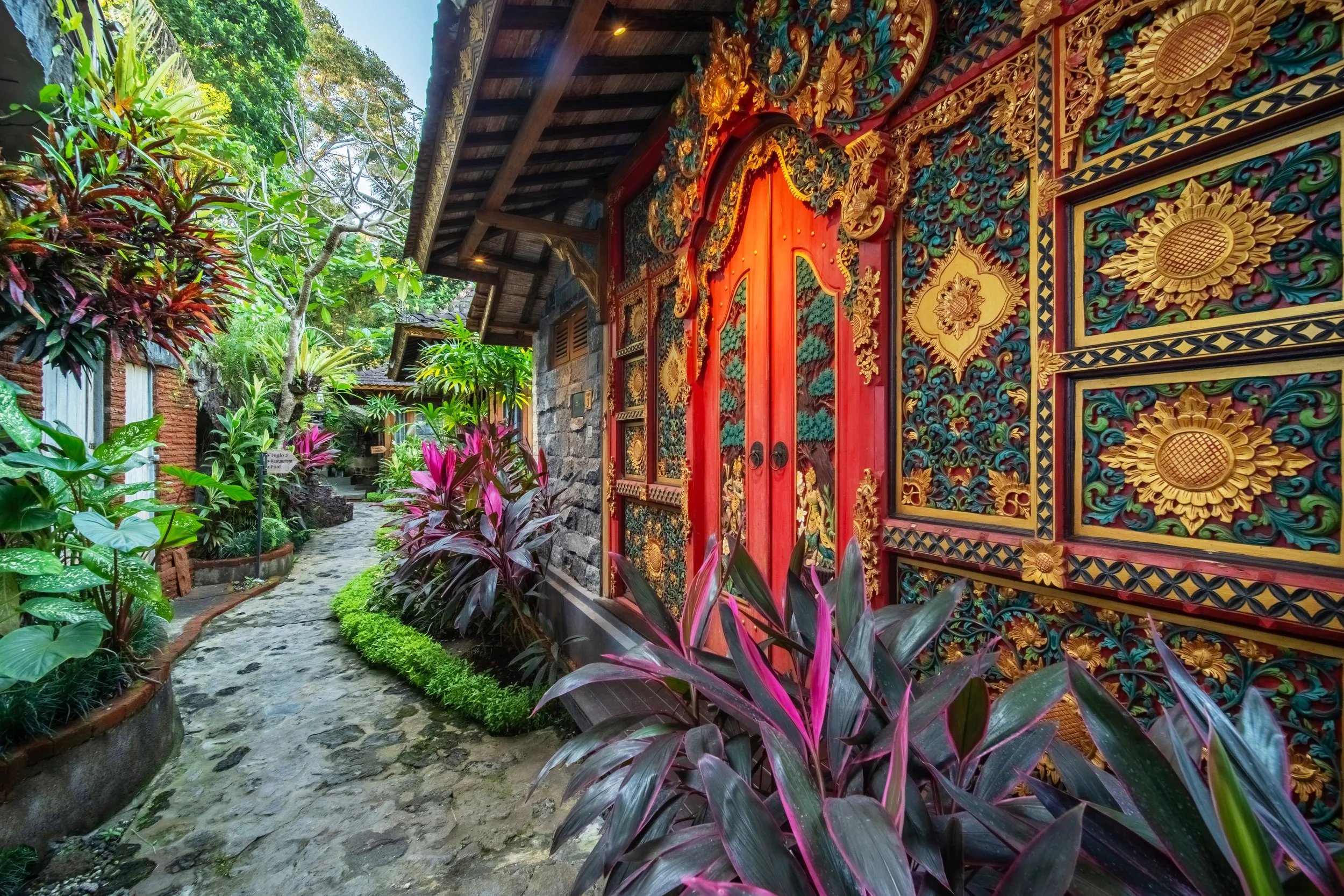 In Ubud, vibrant flora and fauna thrive as part of daily life. Geckos are often seen resting on the roof, their gentle chirps blending with rustling leaves, flowing rivers, and the soothing calls of frogs at night. The area’s rich biodiversity also includes birds, butterflies, and occasionally squirrel, set against lush forest greenery.